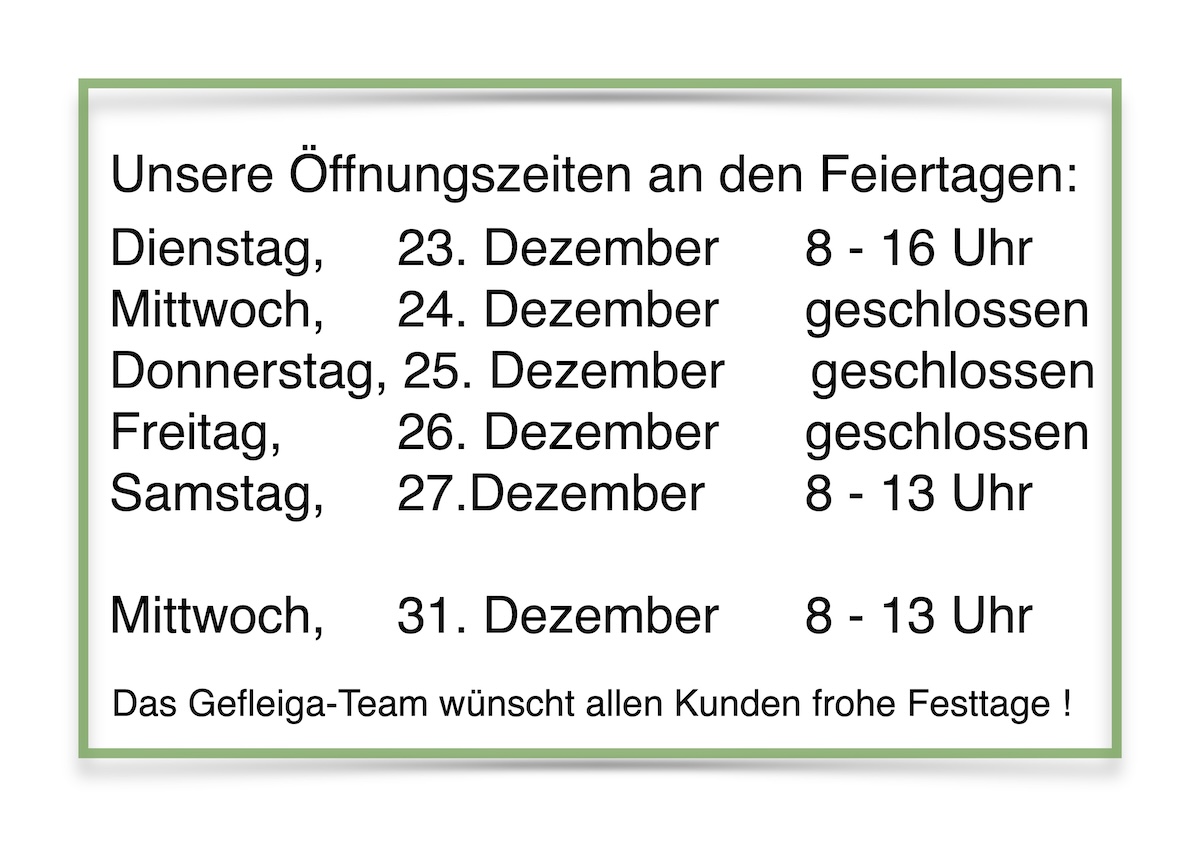 Bestellen Sie gerne per email  an bestellung@gefleiga.de oder telefonisch.
